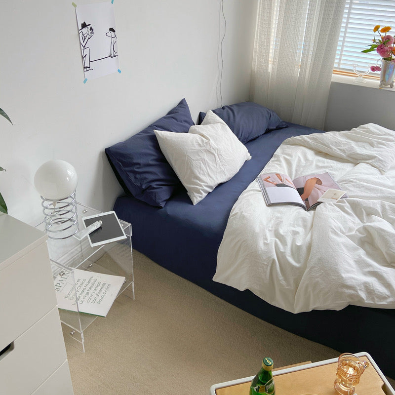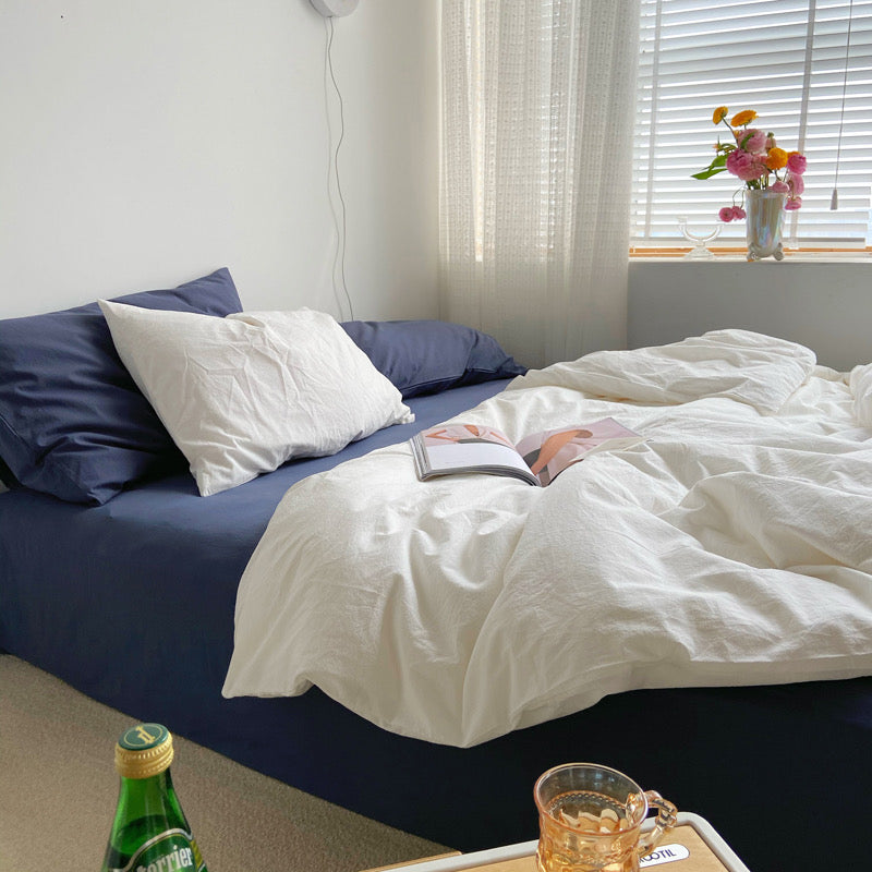 100% Cotton 4-piece Set - Snow White With Blue Ashes