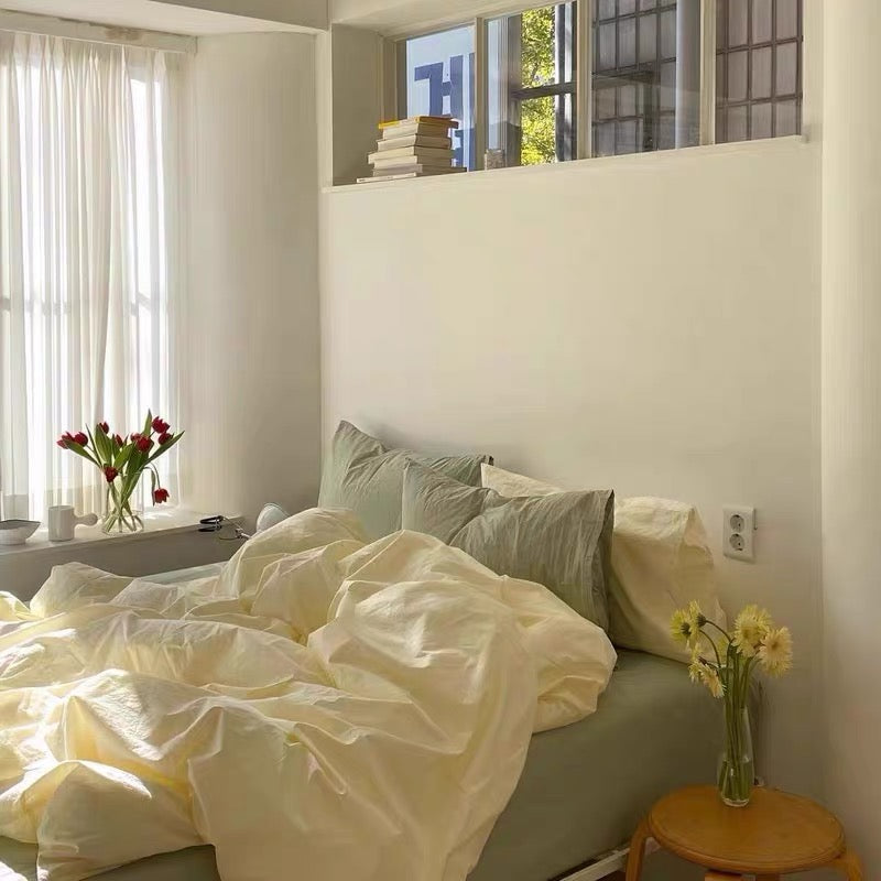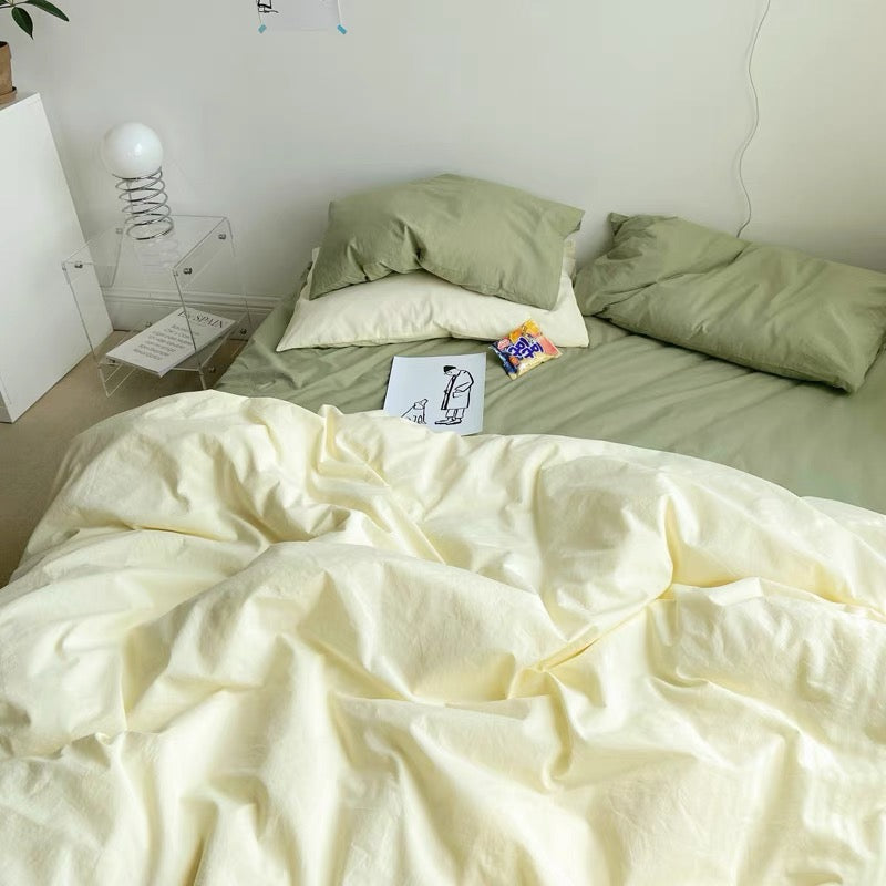 100% Cotton 4-piece Set - Yellow Cream with Bean Green