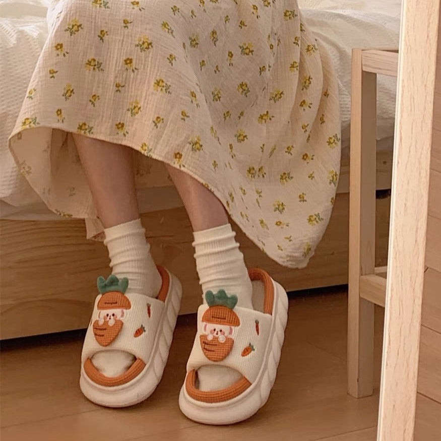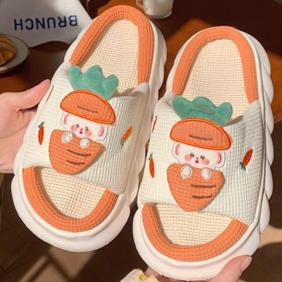 Linen Slippers - Carrot Rabbit