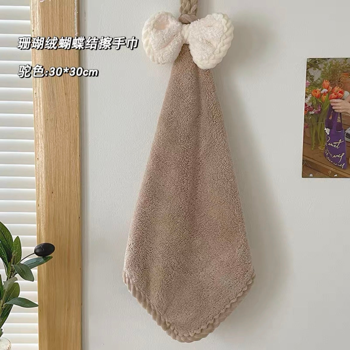 Coral Velvet Hand Towel - White/Brown