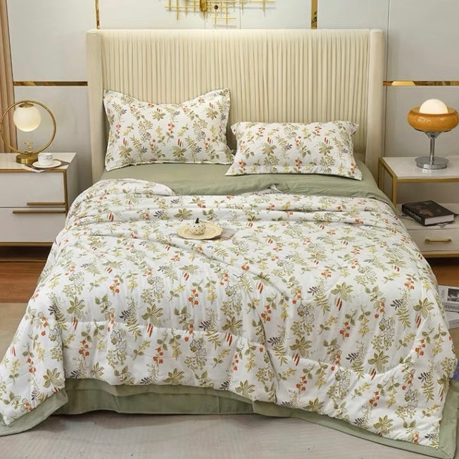 Soybean Fibre Summer Quilt 4-piece Set - Green Blossom