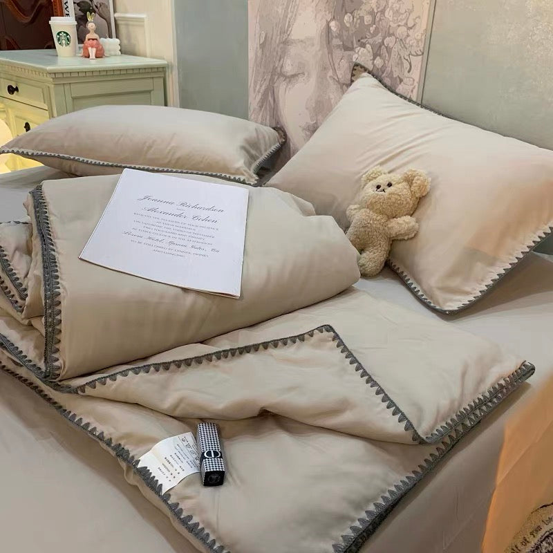 This is the summer quilt that does need quilt cover, can go into washing machine but dryer not recommended to use.