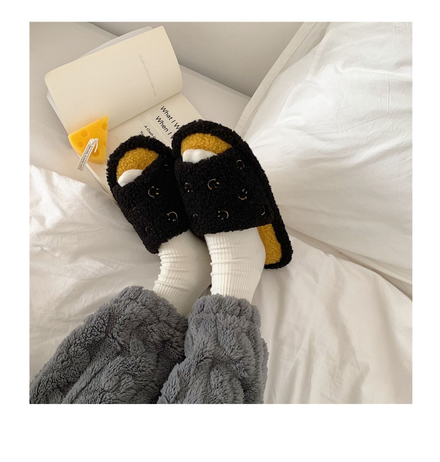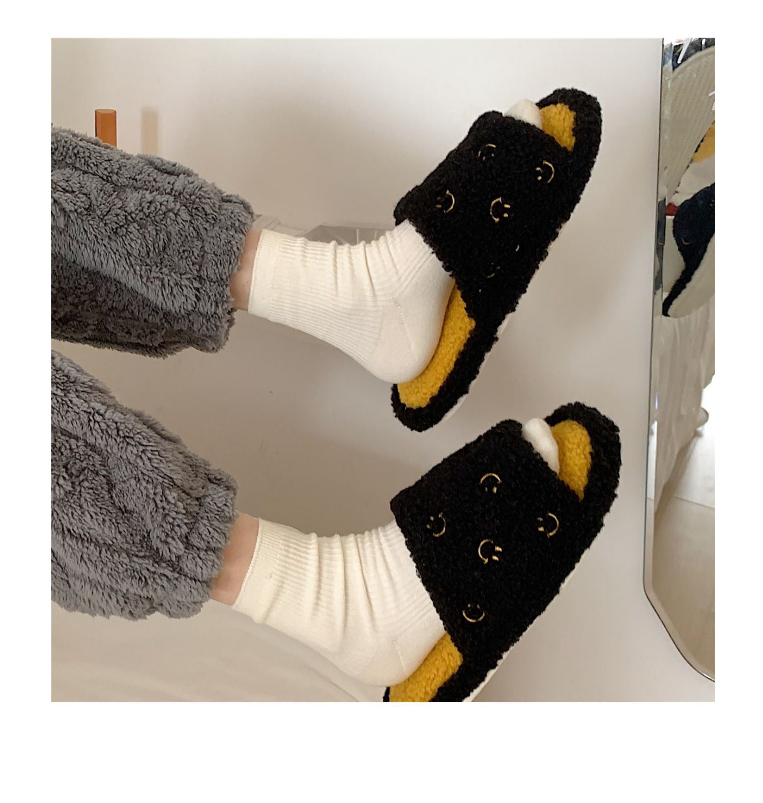 Winter Slippers - Black Smiley Face Half (Men Size)