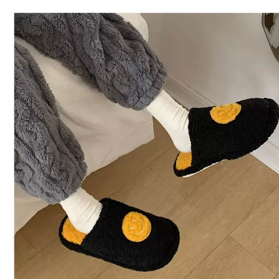 Winter Slippers - Black Smiley Face (Men Size)